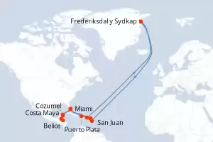 Estados Unidos, México, Honduras, Belice, Paises Bajos, Francia, Groenlandia, Puerto Rico, República Dominicana Itinerario: Miami , Puerto Plata , San Juan , Frederiksdal and Sydkap , Basse-Terre (Guadalupe) , Santo Barthélemy , Philipsburg , Miami , Costa Maya , Belice , Roatan , Cozumel , Miami Comidas incluidas Oceania Marina 18 días Camarote estándar Miami 17/02/2028 desde US$5289 EL PRECIO NO INCLUYE LA PERCEPCIÓN DEL 30% DE AFIP - RG 5463 TARIFA NO REEMBOLSABLE Comidas incluidas Ver las ofertas