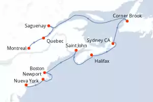 Canadá, Estados Unidos Itinerario: Nueva York , Newport , Boston , Saint John , Saint John , Halifax , Sidney , Corner Brook , Saguenay , Quebec , Montreal Comidas incluidas Oceania Vista 12 días Camarote balcón Nueva York 06/10/2026 desde US$7013 EL PRECIO NO INCLUYE LA PERCEPCIÓN DEL 30% DE AFIP - RG 5463 TARIFA NO REEMBOLSABLE Comidas incluidas Ver las ofertas
