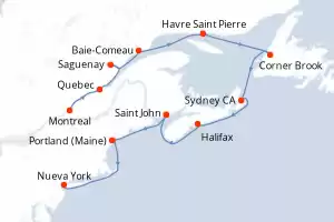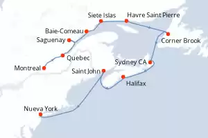 Canadá, Estados Unidos Itinerario: Montreal , Quebec , Saguenay , Baie-Comeau , Siete Islas , Havre Saint Pierre , Corner Brook , Sidney , Halifax , Saint John , Nueva York Comidas incluidas Oceania Vista 12 días Camarote balcón Montreal 17/10/2026 desde US$6026 EL PRECIO NO INCLUYE LA PERCEPCIÓN DEL 30% DE AFIP - RG 5463 TARIFA NO REEMBOLSABLE Comidas incluidas Ver las ofertas