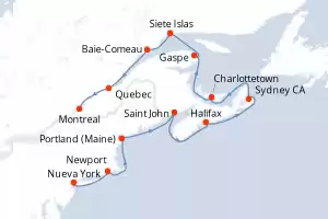 Canadá, Estados Unidos Itinerario: Nueva York , Boston , Portland (Maine) , Saint John , Halifax , Sidney , Charlottetown , Gaspe , Siete Islas , Saguenay , Quebec , Montreal Comidas incluidas Oceania Sirena 13 días Camarote estándar Nueva York 13/10/2027 desde US$5396 EL PRECIO NO INCLUYE LA PERCEPCIÓN DEL 30% DE AFIP - RG 5463 TARIFA NO REEMBOLSABLE Comidas incluidas Ver las ofertas
