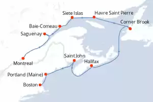 Estados Unidos, Canadá Itinerario: Montreal , Montreal , Saguenay , Baie-Comeau , Siete Islas , Havre Saint Pierre , Corner Brook , Halifax , Saint John , Portland (Maine) , Boston Comidas incluidas Oceania Vista 12 días Camarote balcón Montreal 18/09/2027 desde US$7013 EL PRECIO NO INCLUYE LA PERCEPCIÓN DEL 30% DE AFIP - RG 5463 TARIFA NO REEMBOLSABLE Comidas incluidas Ver las ofertas