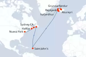 Estados Unidos,Canadá,Antigua y Barbuda,Islandia Itinerario: Nueva York , Halifax , Sidney , Saint Pierre y Miquelon , Saint John's , Grundarfjordur , Akureyri , Siglufjordur - Islande , Isafjordhur , Reykjavik , Reykjavik Comidas incluidas Oceania Vista 15 días Camarote balcón Nueva York 09/07/2026 desde US$6736 EL PRECIO NO INCLUYE LA PERCEPCIÓN DEL 30% DE AFIP - RG 5463 TARIFA NO REEMBOLSABLE Comidas incluidas Ver las ofertas