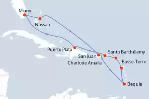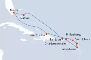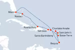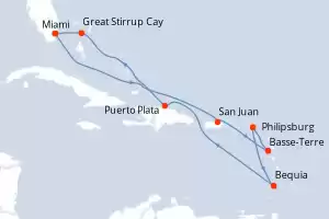 Estados Unidos, Bahamas, República Dominicana, San Vincent y las Granadinas, Paises Bajos, Francia, Puerto Rico Itinerario: Miami , San Juan , Basse-Terre (Guadalupe) , Philipsburg , Bequia , Puerto Plata , Great Stirrup Cay , Miami Comidas incluidas Oceania Marina 11 días Camarote estándar Miami 23/02/2027 desde US$3234 EL PRECIO NO INCLUYE LA PERCEPCIÓN DEL 30% DE AFIP - RG 5463 TARIFA NO REEMBOLSABLE Comidas incluidas Ver las ofertas
