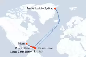 Francia, Groenlandia, Puerto Rico, República Dominicana, Estados Unidos, Paises Bajos Itinerario: Miami , Puerto Plata , San Juan , Frederiksdal and Sydkap , Basse-Terre (Guadalupe) , Santo Barthélemy , Philipsburg , Miami Comidas incluidas Oceania Marina 11 días Camarote estándar Miami 17/02/2028 desde US$3353 EL PRECIO NO INCLUYE LA PERCEPCIÓN DEL 30% DE AFIP - RG 5463 TARIFA NO REEMBOLSABLE Comidas incluidas Ver las ofertas