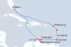 Estados Unidos, Puerto Rico, Francia, Santa Lucia, Grenada, Paises Bajos Itinerario: Miami , Aruba , Willemstad(Curaçao) , Grenada , Castries , Basse-Terre (Guadalupe) , San Juan , Grand Turk , Miami Comidas incluidas Oceania Nautica 13 días Camarote estándar Miami 26/02/2026 desde US$3108 EL PRECIO NO INCLUYE LA PERCEPCIÓN DEL 30% DE AFIP - RG 5463 TARIFA NO REEMBOLSABLE Comidas incluidas Ver las ofertas