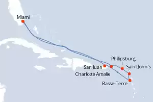 Francia, Estados Unidos, Santa Lucia, Reino Unido, Paises Bajos Itinerario: Miami , Willemstad(Curaçao) , Aruba , Kralendjik , Castries , Pointe a pitre (Guadalupe) , Jost Van Dyke , Miami Comidas incluidas Oceania Nautica 13 días Camarote estándar Miami 05/01/2026 desde US$3778 EL PRECIO NO INCLUYE LA PERCEPCIÓN DEL 30% DE AFIP - RG 5463 TARIFA NO REEMBOLSABLE Comidas incluidas Ver las ofertas