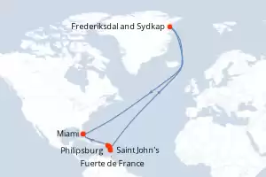 Estados Unidos, Groenlandia, Dominica, Francia, Antigua y Barbuda, Paises Bajos Itinerario: Miami , Philipsburg , Saint John's , Fort-de-France , Roseau , Frederiksdal and Sydkap , Miami Comidas incluidas Oceania Nautica 11 días Camarote estándar Miami 16/02/2026 desde US$3234 EL PRECIO NO INCLUYE LA PERCEPCIÓN DEL 30% DE AFIP - RG 5463 TARIFA NO REEMBOLSABLE Comidas incluidas Ver las ofertas