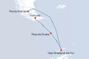 Argentina, Antártico, Chile Itinerario: Punta Arenas , Paso de Drake , Paso de Drake , Ushuaia Comidas incluidas Ocean Explorer 9 días Camarote balcón Punta Arenas 03/02/2027 desde US$15443 EL PRECIO NO INCLUYE LA PERCEPCIÓN DEL 30% DE AFIP - RG 5463 TARIFA NO REEMBOLSABLE Comidas incluidas Ver las ofertas