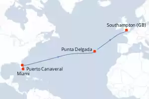 Reino Unido,Portugal,Estados Unidos Itinerario: Southampton , Punta Delgada , Puerto Canaveral , Miami Comidas incluidas Queen Anne 13 días Camarote estándar Southampton 11/01/2028 desde US$2258 EL PRECIO NO INCLUYE LA PERCEPCIÓN DEL 30% DE AFIP - RG 5463 TARIFA NO REEMBOLSABLE Comidas incluidas Ver las ofertas