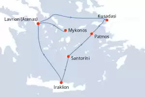 Turquía,Grecia Itinerario: Mykonos , Lavrion (Atenas) , Patmos , Kusadasi , Santoríni , Iraklion , Lavrion (Atenas) Comidas incluidas Celestyal Discovery 4 días Camarote estándar Lavrion (Atenas) 03/09/2027 desde US$680 EL PRECIO NO INCLUYE LA PERCEPCIÓN DEL 30% DE AFIP - RG 5463 TARIFA NO REEMBOLSABLE Comidas incluidas Otras fechas : 10 abr. 26 1 mayo 26 31 jul. 26 Otras fechas Ver las ofertas