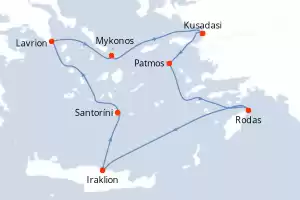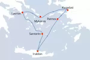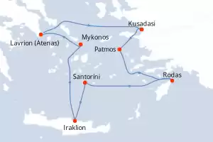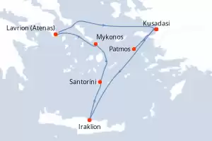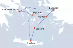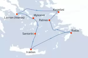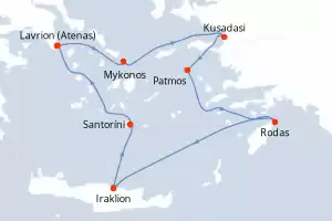 Turquía,Grecia Itinerario: El Pireo Atenas , Kusadasi , Rodas , Agios Nikolaus (Crete) , Santoríni , Mykonos , Mykonos , Milos , El Pireo Atenas Comidas incluidas Celestyal Journey 8 días Camarote estándar El Pireo Atenas 05/09/2026 desde US$1372 EL PRECIO NO INCLUYE LA PERCEPCIÓN DEL 30% DE AFIP - RG 5463 TARIFA NO REEMBOLSABLE Comidas incluidas Otras fechas : 25 abr. 26 9-16-23-30 mayo 26 4-18 jul. 26 Otras fechas Ver las ofertas