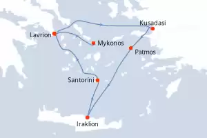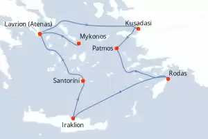 Turquía,Grecia Itinerario: Mykonos , Lavrion (Atenas) , Kusadasi , Patmos , Rodas , Iraklion , Santoríni , Lavrion (Atenas) Comidas incluidas Celestyal Discovery 5 días Camarote estándar Lavrion (Atenas) 07/09/2026 desde US$835 EL PRECIO NO INCLUYE LA PERCEPCIÓN DEL 30% DE AFIP - RG 5463 TARIFA NO REEMBOLSABLE Comidas incluidas Otras fechas : 27 abr. 26 15 jun. 26 27 jul. 26 Otras fechas Ver las ofertas