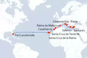 Grecia, Turquía, Italia, Estados Unidos, España, Marruecos, Reino Unido Itinerario: Civitavecchia - Roma , Salerno , Santoríni , Kusadasi , Katakolon , Civitavecchia - Roma , Palma de Mallorca , Gibraltar , Casablanca , Santa Cruz de Tenerife , Santa Cruz de la Palma , Fort Lauderdale Comidas incluidas Enchanted Princess 24 días Camarote estándar Civitavecchia - Roma 10/11/2026 desde US$2279 EL PRECIO NO INCLUYE LA PERCEPCIÓN DEL 30% DE AFIP - RG 5463 TARIFA NO REEMBOLSABLE Comidas incluidas Ver las ofertas