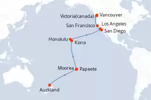 Islas y Costas del Pacífico Itinerario: Auckland , Papeete , Moorea , Kona , Honolulu , Los Angeles , San Diego , San Francisco , Victoria , Vancouver Comidas incluidas Royal Princess 27 días Camarote estándar Auckland 02/04/2027 desde US$3290 EL PRECIO NO INCLUYE LA PERCEPCIÓN DEL 30% DE AFIP - RG 5463 TARIFA NO REEMBOLSABLE Comidas incluidas Ver las ofertas