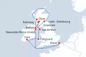 Reino Unido,Irlanda Itinerario: Dover , Portland , Cork , Fishguard , Isla de Man , Rothesay , Greenock , Belfast , Oban , Leith - Edimbourg , Newcastle (UK) , Dover Comidas incluidas Seabourn Ovation 15 días Suite Dover 27/06/2026 desde US$10035 EL PRECIO NO INCLUYE LA PERCEPCIÓN DEL 30% DE AFIP - RG 5463 TARIFA NO REEMBOLSABLE Comidas incluidas Ver las ofertas