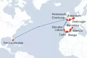Francia, Reino Unido, Estados Unidos, Bélgica, Paises Bajos Itinerario: Rotterdam , Zeebrugge , Le Havre , Cherburgo , Falmouth , Kings Wharf , Fort Lauderdale Comidas incluidas Rotterdam 15 días Camarote estándar Rotterdam 17/10/2027 desde US$1523 EL PRECIO NO INCLUYE LA PERCEPCIÓN DEL 30% DE AFIP - RG 5463 TARIFA NO REEMBOLSABLE Comidas incluidas Ver las ofertas