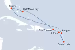 Estados Unidos, Bahamas, Antigua y Barbuda, Santa Lucia, Paises Bajos Itinerario: Miami , Saint Martin (Antilles Néerlandaises) , Antigua , Santa Lucia , St Kitts , San Thomas , Half Moon Cay , Miami Comidas incluidas MS Zuiderdam 11 días Camarote estándar Miami 07/04/2027 desde US$1847 EL PRECIO NO INCLUYE LA PERCEPCIÓN DEL 30% DE AFIP - RG 5463 TARIFA NO REEMBOLSABLE Comidas incluidas Ver las ofertas
