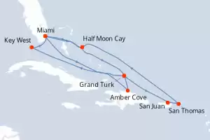América del Norte, Bahamas, Antillas, México Itinerario: Miami , Half Moon Cay , Grand Turk , Amber Cove , Key West , Miami , Grand Turk , San Juan , San Thomas , Half Moon Cay , Miami Comidas incluidas MS Zuiderdam 15 días Camarote estándar Miami 04/04/2026 desde US$1979 EL PRECIO NO INCLUYE LA PERCEPCIÓN DEL 30% DE AFIP - RG 5463 TARIFA NO REEMBOLSABLE Comidas incluidas Ver las ofertas