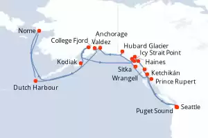Estados Unidos Itinerario: Seattle , Puget Sound , Ketchikán , Sitka , Icy Strait Point , Valdez , College Fjord , Dutch Harbour , Nome , Kodiak , Anchorage , Anchorage , Hubard Glacier , Haines , Juneau , Wrangell , Prince Rupert , Seattle Comidas incluidas Noordam 29 días Camarote estándar Seattle 07/06/2026 desde US$6131 EL PRECIO NO INCLUYE LA PERCEPCIÓN DEL 30% DE AFIP - RG 5463 TARIFA NO REEMBOLSABLE Comidas incluidas Ver las ofertas