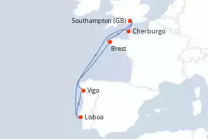 Reino Unido,Francia,Portugal,España Itinerario: Southampton , Brest , Lisboa , Vigo , Cherburgo , Southampton Comidas incluidas MSC Meraviglia 8 días Suite Southampton 25/09/2027 desde US$2779 NAVEGA CON CONFIANZA EL PRECIO NO INCLUYE LA PERCEPCIÓN DEL 30% DE AFIP - RG 5463 TARIFA NO REEMBOLSABLE Comidas incluidas Otras fechas : 12 jun. 27 10 jul. 27 Ver las ofertas