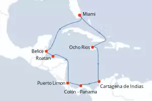 Estados Unidos,Jamaica,Colombia,Panamá,Costa Rica,Honduras,Belice Itinerario: Miami , Ocho Rios , Cartagena de Indias , Colón - Panama , Puerto Limon , Roatan , Belice , Miami Comidas incluidas MSC Poesia 12 días Suite Miami 07/03/2027 desde US$3519 NAVEGA CON CONFIANZA EL PRECIO NO INCLUYE LA PERCEPCIÓN DEL 30% DE AFIP - RG 5463 TARIFA NO REEMBOLSABLE Comidas incluidas Otras fechas : 1-22 nov. 26 23 dic. 26 14 feb. 27 Ver las ofertas