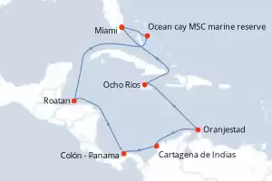 Estados Unidos,Jamaica,Aruba,Colombia,Panamá,Honduras,Bahamas Itinerario: Miami , Ocho Rios , Oranjestad (Aruba) , Cartagena de Indias , Colón - Panama , Roatan , Ocean cay MSC marine reserve , Miami Comidas incluidas MSC Divina 12 días Suite Miami 29/03/2026 desde US$5359 NAVEGA CON CONFIANZA EL PRECIO NO INCLUYE LA PERCEPCIÓN DEL 30% DE AFIP - RG 5463 TARIFA NO REEMBOLSABLE Comidas incluidas Ver las ofertas