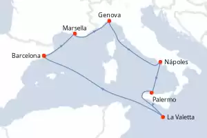 España, Malta, Italia, Francia Itinerario: Barcelona , Marsella , Livorno , Cagliari , Palermo , La Valetta , Barcelona Comidas incluidas MSC Splendida 8 días Suite Barcelona 10/05/2026 desde US$2489 NAVEGA CON CONFIANZA EL PRECIO NO INCLUYE LA PERCEPCIÓN DEL 30% DE AFIP - RG 5463 TARIFA NO REEMBOLSABLE Comidas incluidas Otros puertos de embarque : Marsella La Valetta Livorno Palermo Otras fechas : 25 abr. 26 17-24-31 mayo 26 7-14-21-28 jun. 26 Otras fechas Ver las ofertas