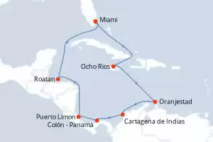 Estados Unidos,Jamaica,Colombia,Panamá,Costa Rica,Honduras,Belice Itinerario: Miami , Ocho Rios , Cartagena de Indias , Colón - Panama , Puerto Limon , Roatan , Belice , Miami Comidas incluidas MSC Poesia 12 días Suite Miami 23/12/2026 desde US$5119 NAVEGA CON CONFIANZA EL PRECIO NO INCLUYE LA PERCEPCIÓN DEL 30% DE AFIP - RG 5463 TARIFA NO REEMBOLSABLE Comidas incluidas Otras fechas : 1-22 nov. 26 14 feb. 27 7 mar. 27 Ver las ofertas