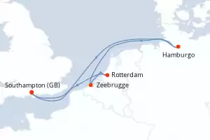 Reino Unido,Alemania,Paises Bajos,Francia Itinerario: Southampton , Hamburgo , Rotterdam , Cherburgo , Le Havre , Southampton Comidas incluidas MSC Preziosa 8 días Suite Southampton 27/11/2026 desde US$2279 NAVEGA CON CONFIANZA EL PRECIO NO INCLUYE LA PERCEPCIÓN DEL 30% DE AFIP - RG 5463 TARIFA NO REEMBOLSABLE Comidas incluidas Otros puertos de embarque : Le Havre Hamburgo Rotterdam Otras fechas : 4 dic. 26 5-12-19 feb. 27 Ver las ofertas