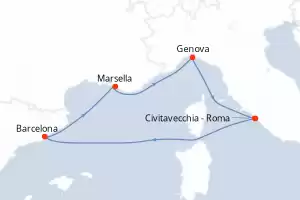 Italia, Francia, España Itinerario: Civitavecchia - Roma , Barcelona , Marsella , Genova , Civitavecchia - Roma Comidas incluidas MSc Fantasia 6 días Suite Civitavecchia - Roma 14/04/2026 desde US$1739 NAVEGA CON CONFIANZA EL PRECIO NO INCLUYE LA PERCEPCIÓN DEL 30% DE AFIP - RG 5463 TARIFA NO REEMBOLSABLE Comidas incluidas Otros puertos de embarque : Genova Barcelona Otras fechas : 19 abr. 26 Ver las ofertas