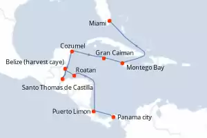 Islas Caimán, Jamaica, Panamá, Costa Rica, Honduras, Belice, Guatemala, México, Estados Unidos Itinerario: Miami , Key West , Cozumel , Santo Thomas de Castilla , Belize (harvest caye) , Roatan , Puerto Limon , Colón - Panama , Falmouth , Gran Caiman , Miami Comidas incluidas Seven Seas Grandeur 15 días Suite Miami 22/12/2027 desde US$9623 EL PRECIO NO INCLUYE LA PERCEPCIÓN DEL 30% DE AFIP - RG 5463 TARIFA NO REEMBOLSABLE Ver las ofertas