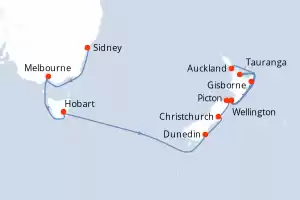 Nueva Zelanda, Australia Itinerario: Sidney , Melbourne , Melbourne , Hobart , Dunedin , Christchurch , Picton , Wellington , Gisborne , Tauranga , Bay of Island , Auckland Comidas incluidas Seven Seas Explorer 17 días Suite Sidney 29/12/2026 desde US$16000 EL PRECIO NO INCLUYE LA PERCEPCIÓN DEL 30% DE AFIP - RG 5463 TARIFA NO REEMBOLSABLE Ver las ofertas