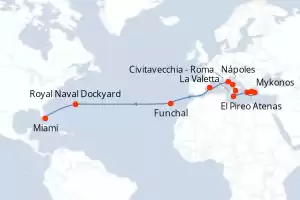 Portugal, Estados Unidos, España, Reino Unido, Italia, Malta, Grecia Itinerario: El Pireo Atenas , Mykonos , Katakolon , La Valetta , Messine , Nápoles , Civitavecchia - Roma , Palma de Mallorca , Funchal , Royal Naval Dockyard , Miami Comidas incluidas Seven Seas Grandeur 22 días Suite El Pireo Atenas 01/11/2026 desde US$14642 EL PRECIO NO INCLUYE LA PERCEPCIÓN DEL 30% DE AFIP - RG 5463 TARIFA NO REEMBOLSABLE Ver las ofertas