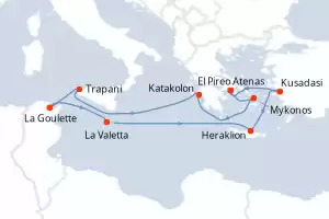 Grecia, Turquía, Malta, Túnez, Italia Itinerario: El Pireo Atenas , Mykonos , Katakolon , Trapani , La Goulette , La Valetta , Heraklion , Kusadasi , El Pireo Atenas Comidas incluidas Seven Seas Mariner 11 días Suite El Pireo Atenas 10/10/2027 desde US$8053 EL PRECIO NO INCLUYE LA PERCEPCIÓN DEL 30% DE AFIP - RG 5463 TARIFA NO REEMBOLSABLE Ver las ofertas