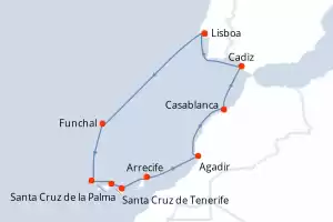 España, Portugal, Marruecos Itinerario: Barcelona , Motril , Cadiz , Casablanca , Agadir , Arrecife , Las Palmas , Santa Cruz de Tenerife , Santa Cruz de la Palma , Funchal , Lisboa Comidas incluidas Seven Seas Voyager 13 días Suite Barcelona 22/10/2027 desde US$9411 EL PRECIO NO INCLUYE LA PERCEPCIÓN DEL 30% DE AFIP - RG 5463 TARIFA NO REEMBOLSABLE Ver las ofertas