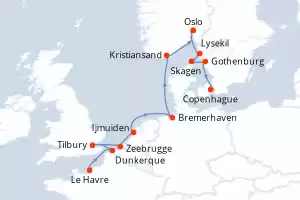 Francia,Reino Unido,Bélgica,Paises Bajos,Alemania,Noruega,Suecia,Dinamarca Itinerario: Le Havre , Dunkerque , Tilbury , Zeebrugge , Ijmuiden , Ijmuiden , Bremerhaven , Kristiansand , Oslo , Lysekil , Skagen , Gothenburg , Copenhague Comidas incluidas Seven Seas Mariner 15 días Suite Le Havre 27/05/2027 desde US$13910 EL PRECIO NO INCLUYE LA PERCEPCIÓN DEL 30% DE AFIP - RG 5463 TARIFA NO REEMBOLSABLE Ver las ofertas