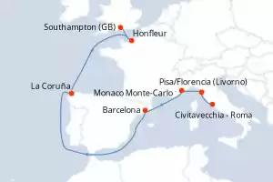 Francia, Reino Unido, España, Monaco, Italia Itinerario: Civitavecchia - Roma , Pisa/Florencia (Livorno) , Monaco Monte-Carlo , Monaco Monte-Carlo , Barcelona , Barcelona , La Coruña , La Coruña , Honfleur , Honfleur , Southampton , Southampton Comidas incluidas Seven Seas Grandeur 14 días Suite Civitavecchia - Roma 24/05/2026 desde US$14595 EL PRECIO NO INCLUYE LA PERCEPCIÓN DEL 30% DE AFIP - RG 5463 TARIFA NO REEMBOLSABLE Ver las ofertas