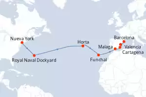 España, Portugal, Estados Unidos, Reino Unido Itinerario: Nueva York , Royal Naval Dockyard , Horta , Funchal , Malaga , Cartagena , Valencia , Barcelona Comidas incluidas Seven Seas Prestige 15 días Suite Nueva York 27/04/2027 desde US$8997 EL PRECIO NO INCLUYE LA PERCEPCIÓN DEL 30% DE AFIP - RG 5463 TARIFA NO REEMBOLSABLE Ver las ofertas