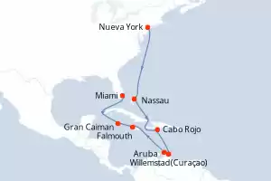 Bahamas,República Dominicana,Paises Bajos,Jamaica,Islas Caimán,Estados Unidos Itinerario: Nueva York , Nassau , Cabo Rojo , Willemstad(Curaçao) , Aruba , Falmouth , Gran Caiman , Miami Comidas incluidas Seven Seas Grandeur 15 días Suite Nueva York 04/11/2027 desde US$10462 EL PRECIO NO INCLUYE LA PERCEPCIÓN DEL 30% DE AFIP - RG 5463 TARIFA NO REEMBOLSABLE Ver las ofertas