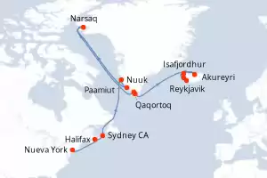 Estados Unidos, Islandia, Groenlandia, Canadá Itinerario: Nueva York , Halifax , Sidney , Nuuk , Paamiut , Narsaq , Qaqortoq , Nanortalik , Isafjordhur , Akureyri , Grundarfjordur , Reykjavik , Reykjavik Comidas incluidas Seven Seas Mariner 19 días Suite Nueva York 29/06/2026 desde US$16933 EL PRECIO NO INCLUYE LA PERCEPCIÓN DEL 30% DE AFIP - RG 5463 TARIFA NO REEMBOLSABLE Ver las ofertas