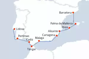 España, Marruecos, Portugal Itinerario: Lisboa , Portimao , Cadiz , Tánger , Malaga , Cartagena , Alicante , Ibiza , Palma de Mallorca , Barcelona Comidas incluidas Seven Seas Mariner 12 días Suite Lisboa 11/08/2027 desde US$9729 EL PRECIO NO INCLUYE LA PERCEPCIÓN DEL 30% DE AFIP - RG 5463 TARIFA NO REEMBOLSABLE Ver las ofertas