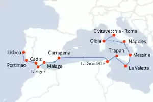 Malta, Italia, Túnez, España, Marruecos, Portugal Itinerario: Lisboa , Portimao , Cadiz , Tánger , Malaga , Cartagena , La Goulette , Trapani , La Valetta , Messine , Nápoles , Olbia , Civitavecchia - Roma Comidas incluidas Seven Seas Voyager 15 días Suite Lisboa 27/09/2027 desde US$11820 EL PRECIO NO INCLUYE LA PERCEPCIÓN DEL 30% DE AFIP - RG 5463 TARIFA NO REEMBOLSABLE Ver las ofertas