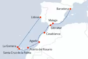 Portugal, España, Marruecos, Reino Unido Itinerario: Lisboa , Santa Cruz de la Palma , La Gomera , Puerto del Rosario , Agadir , Casablanca , Gibraltar , Malaga , Barcelona Comidas incluidas Seven Seas Voyager 11 días Suite Lisboa 09/12/2025 desde US$12611 EL PRECIO NO INCLUYE LA PERCEPCIÓN DEL 30% DE AFIP - RG 5463 TARIFA NO REEMBOLSABLE Ver las ofertas