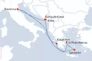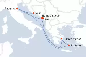 Italia,Croacia,Montenegro,Grecia Itinerario: Ravenna , Baie de Kotor , Kotor , El Pireo Atenas , Santoríni , Katakolon , Ravenna Comidas incluidas Brilliance of the Seas 8 días Camarote estándar Ravenna 23/10/2027 desde US$1411 EL PRECIO NO INCLUYE LA PERCEPCIÓN DEL 30% DE AFIP - RG 5463 TARIFA NO REEMBOLSABLE Comidas incluidas Ver las ofertas