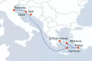 Italia, Croacia, Grecia Itinerario: Ravenna , Dubrovnik , Santoríni , El Pireo Atenas , Split , Ravenna Comidas incluidas Explorer of the Seas 8 días Camarote estándar Ravenna 17/10/2026 desde US$1155 EL PRECIO NO INCLUYE LA PERCEPCIÓN DEL 30% DE AFIP - RG 5463 TARIFA NO REEMBOLSABLE Comidas incluidas Ver las ofertas