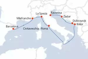 Montenegro, Italia, Francia, España, Croacia Itinerario: Barcelona , Villefranche , La Spezia , Civitavecchia - Roma , Kotor , Dubrovnik , Zadar , Ravenna Comidas incluidas Explorer of the Seas 10 días Camarote estándar Barcelona 07/05/2026 desde US$2217 EL PRECIO NO INCLUYE LA PERCEPCIÓN DEL 30% DE AFIP - RG 5463 TARIFA NO REEMBOLSABLE Comidas incluidas Ver las ofertas