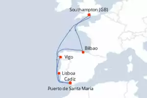 Reino Unido,Portugal,España Itinerario: Southampton , Vigo , Lisboa , Cadiz , Puerto de Santa Maria , Bilbao , Southampton Comidas incluidas Mariner of the Seas 10 días Camarote estándar Southampton 08/09/2027 desde US$1285 EL PRECIO NO INCLUYE LA PERCEPCIÓN DEL 30% DE AFIP - RG 5463 TARIFA NO REEMBOLSABLE Comidas incluidas Otras fechas : 30 ago. 27 Ver las ofertas