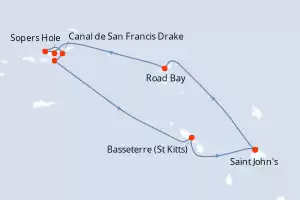 Itinerario : Saint John's, Gustavia, Canal de San Francis Drake, Norman Island, Sopers Hole, Spanish Town, Islas Virgenes, Jost Van Dyke, Road Bay, Basseterre (St Kitts), South Friar's beach, Saint John's