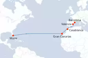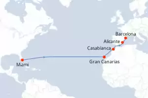 España, Marruecos, Estados Unidos Itinerario: Miami , Gran Canarias , Casablanca , Valencia , Barcelona Comidas incluidas Scarlet Lady 15 días Camarote estándar Miami 24/04/2027 desde US$1530 Comidas incluidas Ver las ofertas