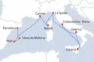 Italia, Francia, España Itinerario: Barcelona , Palma de Mallorca , Ibiza , Cannes , Ajaccio , La Spezia , Salerno , Catania , Civitavecchia - Roma Comidas incluidas Scarlet Lady 13 días Camarote estándar Barcelona 10/08/2026 desde US$3566 Comidas incluidas Ver las ofertas